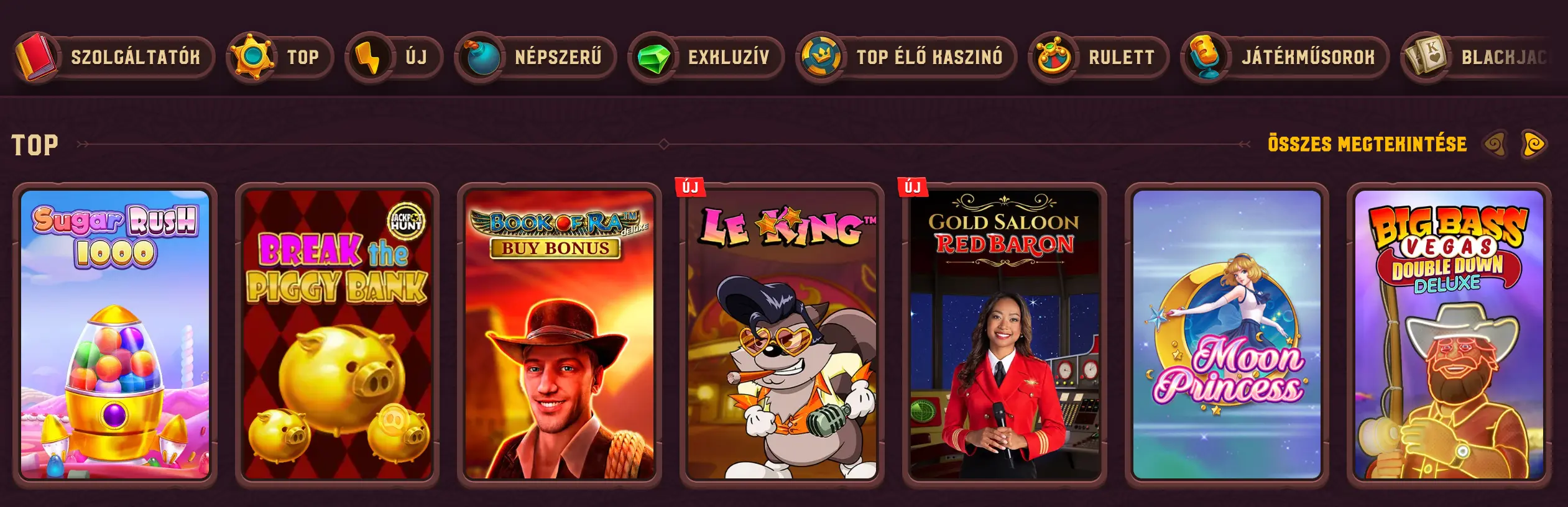 • 50 ingyenes pörgetés minden 5 000 Ft feletti befizetésre
