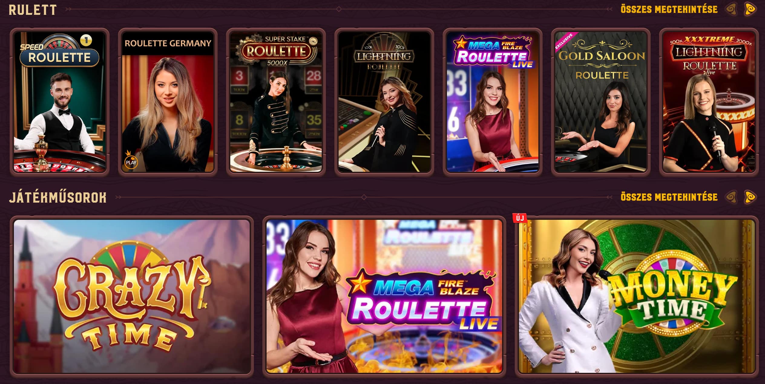 A valódi kaszinóélményt az élő kaszinó szekció biztosítja, ahol a játékosok valódi osztókkal játszhatnak valós időben. Az élő játékokat az Evolution Gaming és a Pragmatic Play Live biztosítja, így kiváló minőségű közvetítés és interaktív élmény várja a felhasználókat.